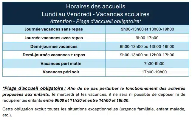 Le service du périscolaire est ouvert chaque jour en dehors des vacances scolaires.